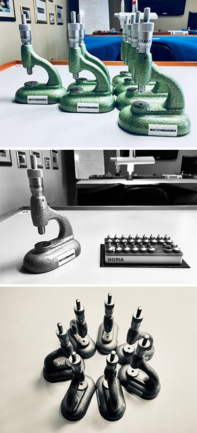 Η “Horia” συνοδεύεται από εξειδικευμένα εξαρτήματα - αξεσουάρ, τα ωστήρια και τις βάσεις, τα οποία έχουν διάφορα διαμετρήματα, αναλόγως το διαμέτρημα του “ρουμπινιού” στο οποίο καλείται να ενεργήσει ο ωρολογοποιός.